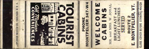 E Montpelier Vt Tourist Cabins With Modern Conveniences Vermont Matchbook Cover Ebay